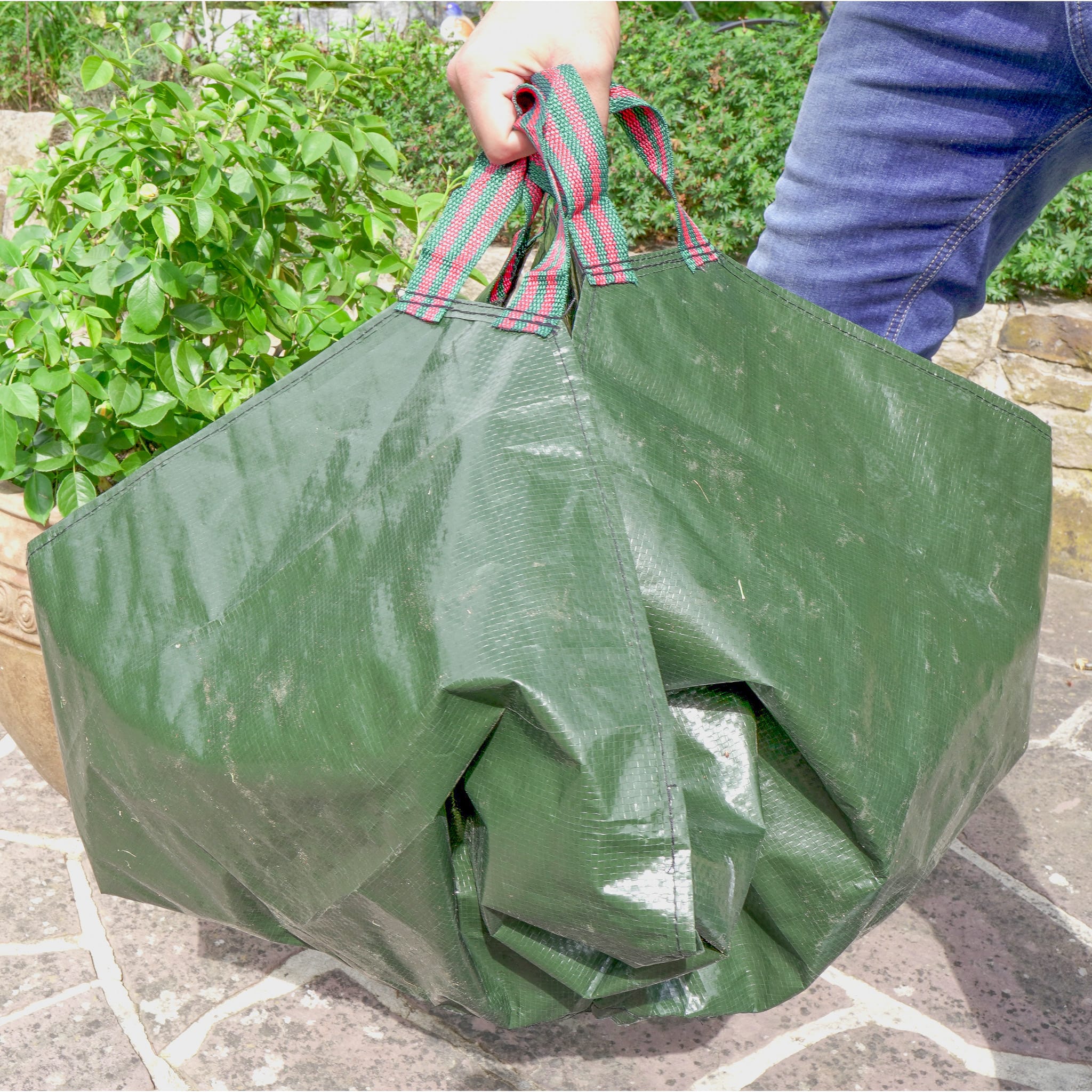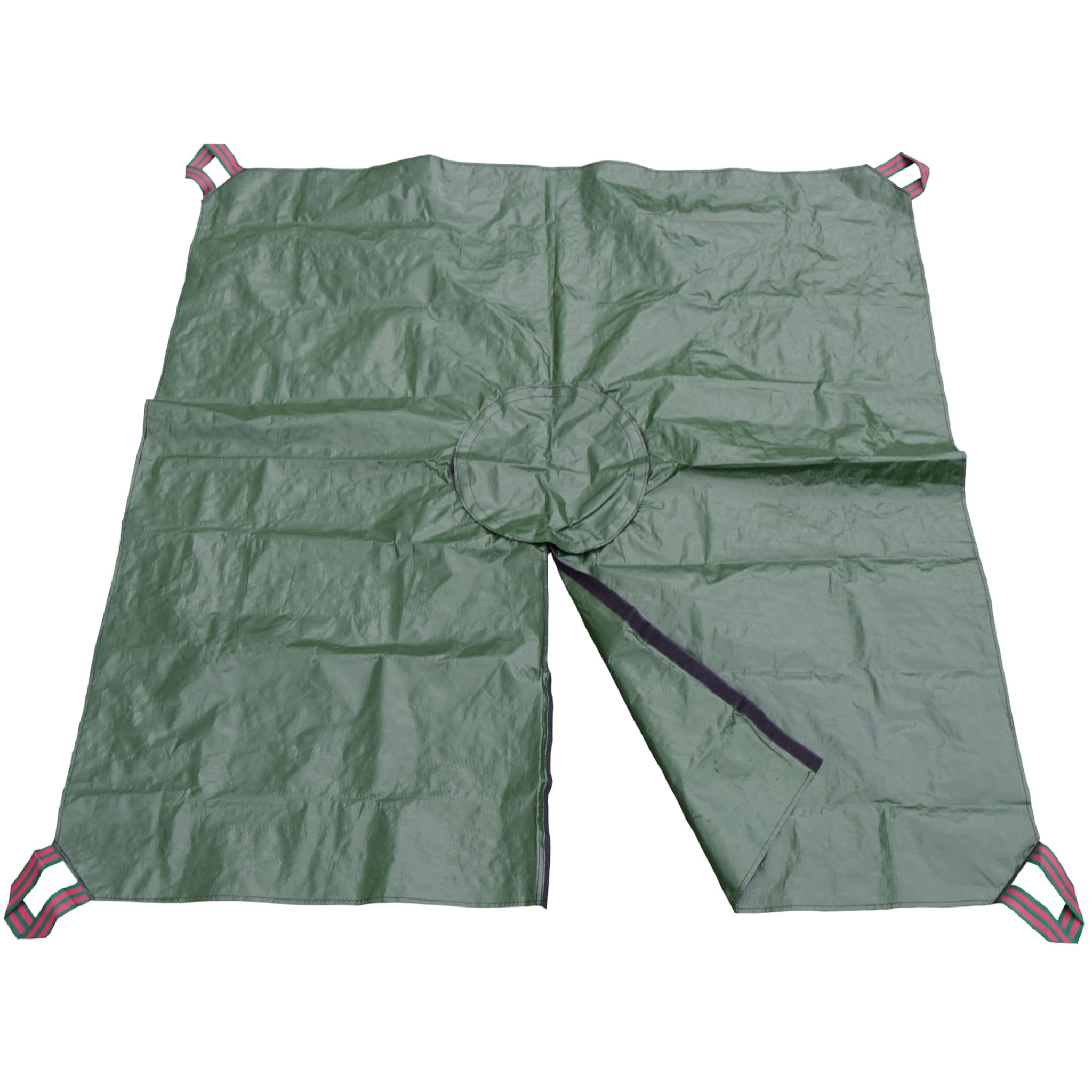 Die Plane besteht aus strapazierfähigem Polyethylen und Polypropylen, das robust und wetterfest ist. Dieses Material hält auch schwerer Belastung stand und eignet sich ideal für den dauerhaften Einsatz im Freien. Die hochwertige Verarbeitung der Tragegriffe sorgt dafür, dass die Plane mitsamt ihrem Inhalt einfach und sicher transportiert und entsorgt werden kann. Die stabilen Handgriffe sind dabei besonders ergonomisch und erleichtern dir somit auch schwerere Arbeiten.